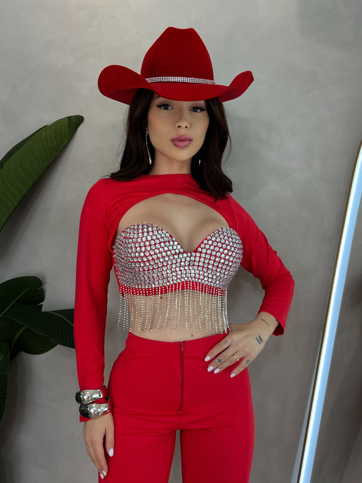 - Tecido: Cirrê trilobal / Strass / Pedrarias / Correntes