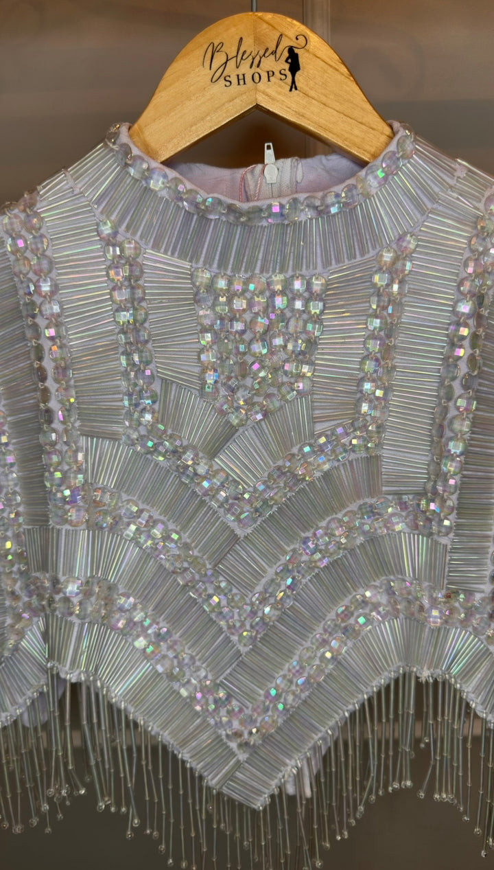 Material: Jacard 3D/ Franjas/ Peças com aplicações manuais / Pedrarias/